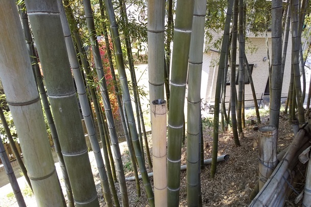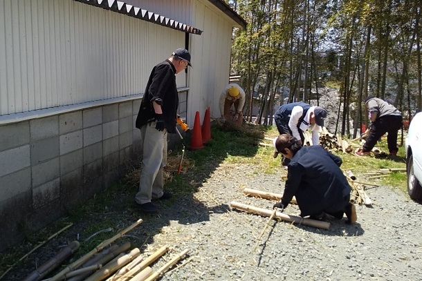 伸びた竹を切り、ゴミとして出せるよう短く切ってまとめる作業をしました。