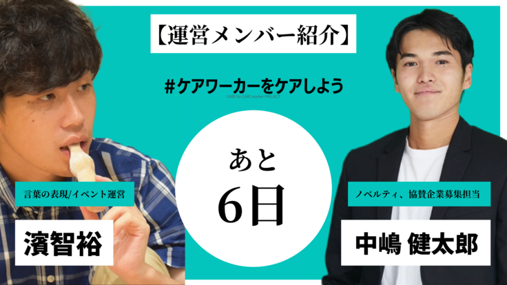 はじめまして、ノベルティ・協賛企業周りを担当させて頂いている中嶋と申します。 今回、The Creative Academyで同じように受講していた秋本さんからお声がけ頂き、このプロジェクトに参加させて頂いております。 自分自身、友人に介護従事者(ケアワーカー)がいる中で、その大変さかつ重要さを常々伺っており 微力ながらにケアワーカーの方々を支えられたらなと思い参加を決めました。 個人的には、ケアワーカーのみならず、その先にいるケアワーカーを取り巻く方々がみんな少しでもハッピーになればいいなと思っております。 どうぞよろしくお願い致します。