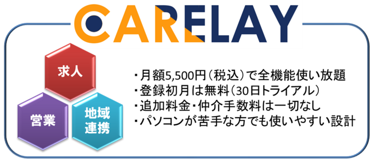 【介護福祉事業所向け】CARELAY 1年間無料利用