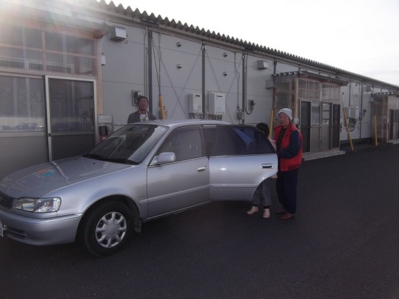 2011年10月、仮設住宅の集会所で説明会を行った際、説明を聞きに集まった数人で「共同で使える車があるなら、運転できない人のために送迎をしてはどうか」という話になり、第3団地の住民を中心にカーシェアリングを開始しました。現在、大森団地のカーシェアリング利用者は約12名で、主に第3団地にお住まいの2名が皆さんを送迎しています。