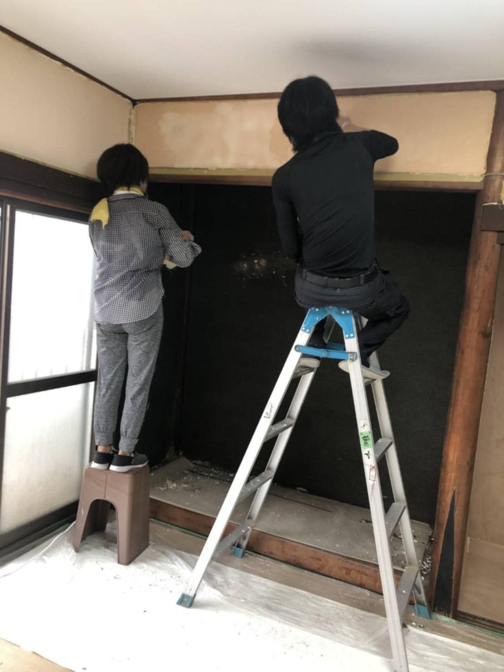 23日24日と、ボランティアさんにお手伝いいただき、2FのDIY部分(壁の漆喰塗り)がほとんど終了しました。