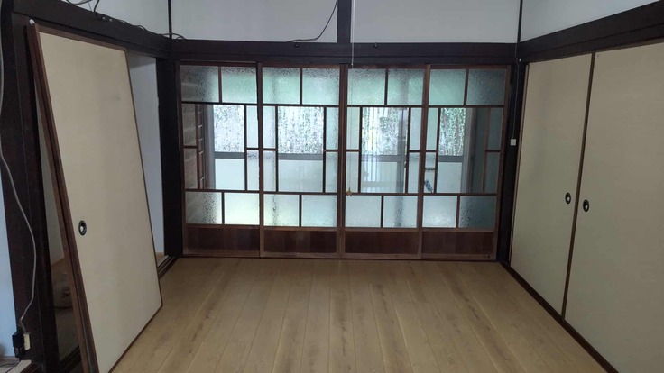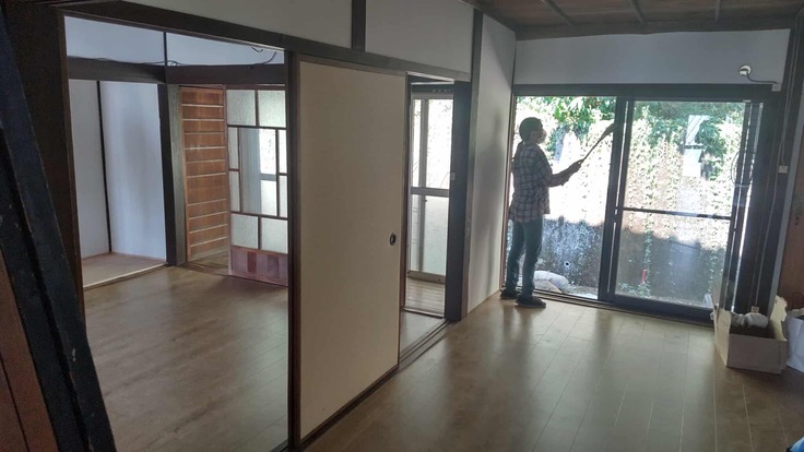 猫カフェメインになる4部屋・蛍光灯・縁側・サッシの掃除を行い、ピカピカになりました。