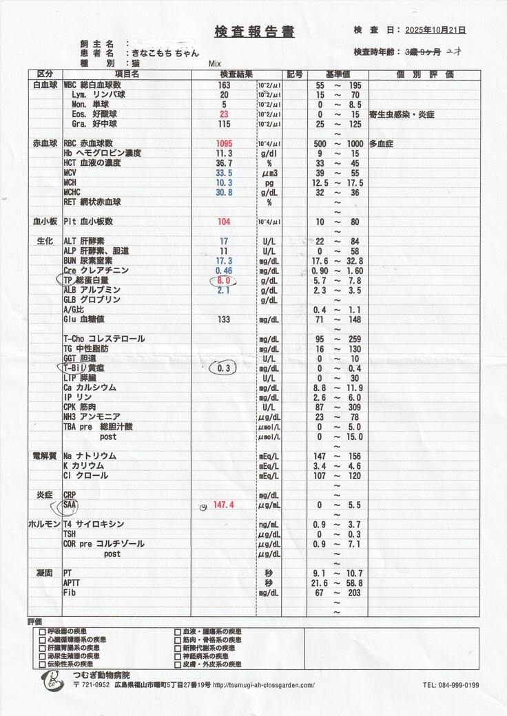 カフェのかかりつけの動物病院で、受入時の検査とワクチン接種、不妊手術の予約を取りに行く予定が急遽FIPの検査で受診することになりました。