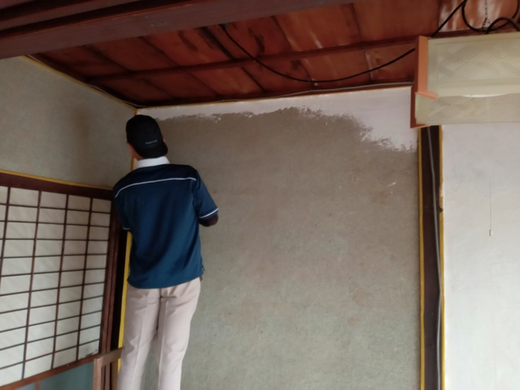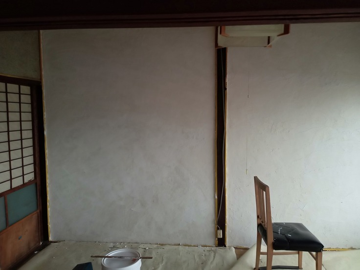・猫の待機部屋&スタッフ部屋にする基本的にオープンにしない部屋の壁にDIYで漆喰を試し塗りしました。