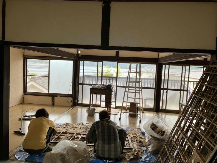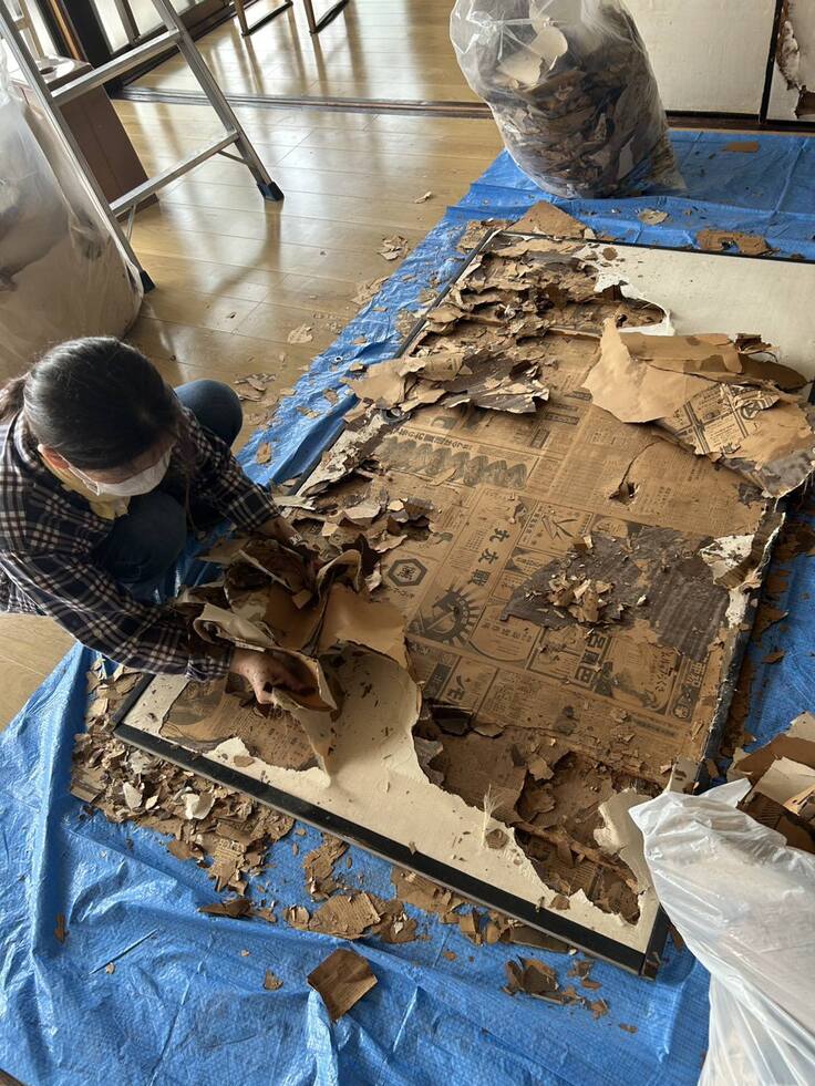 経費削減のために進めているDIYで、2F待機部屋部分のボロボロになっていた襖の紙をはがしました。