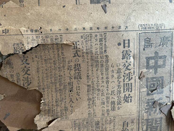 進捗状況のご報告 大正13年の新聞紙が出て来ました!