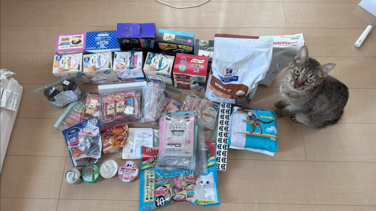 亡くなった猫ちゃんのために買いそろえたというフードを送っていただきました。