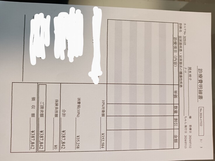 これから毎月2万程度かかる予定となっています。くろが頑張ってくれると信じて、我が家ももちろん治療費の捻出、