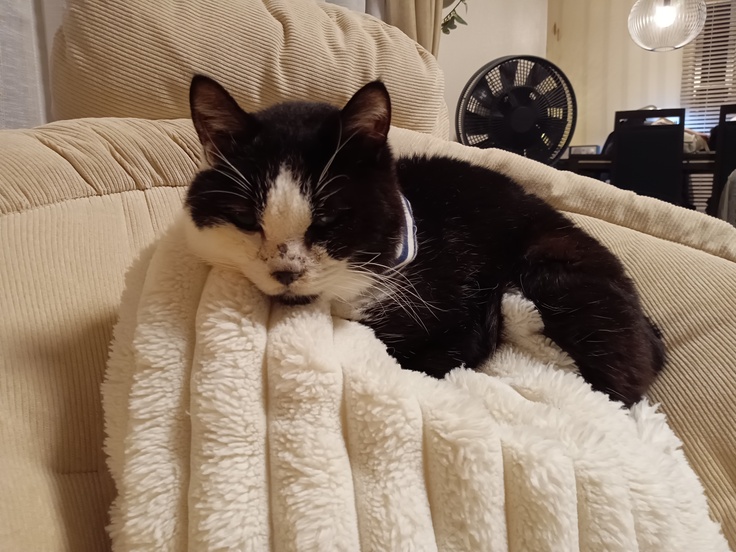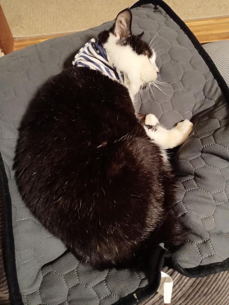 体重も増えてるし、機嫌もいいし、順調です!と。体重はなんと3.7キロになりました。術後2.6キロなので、すごいデブりました。でもひさびさのふっくらくろは、かわいい限りです。