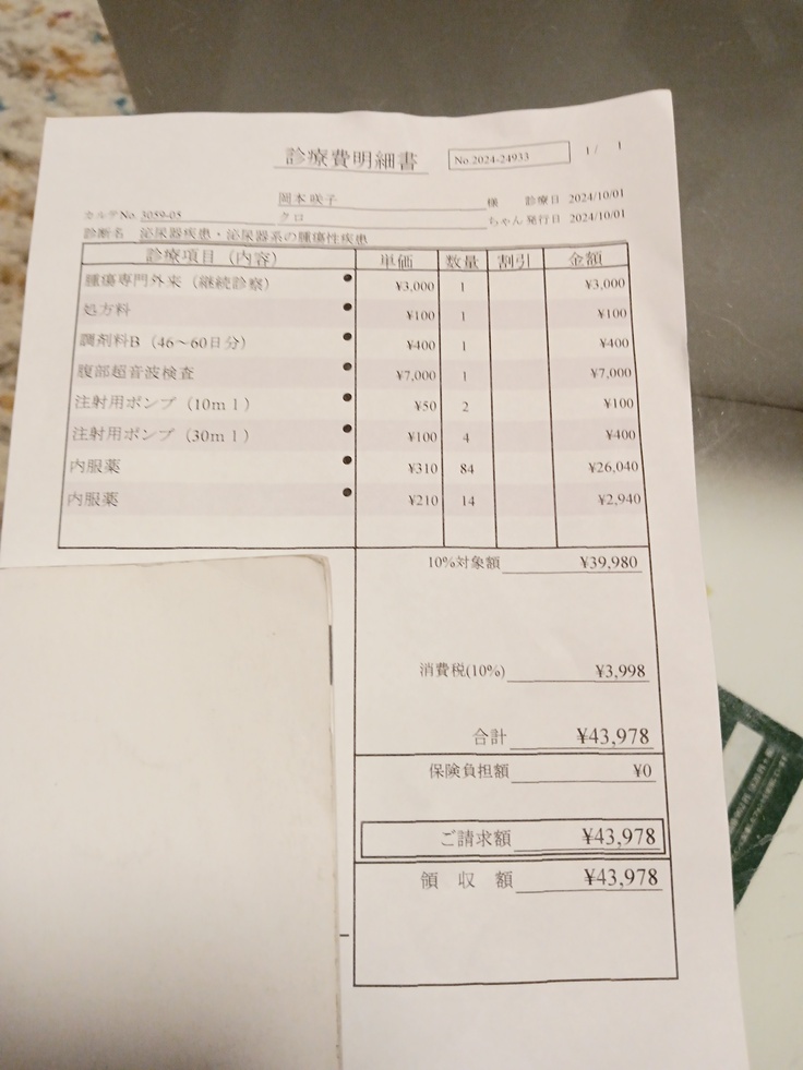 フード代は別なので、かなり厳しい、、、でもくろのためと思い、今まで残業代のかわりに貯めてやすみにしていたのを、残業代としてもらい、診察代にあてることにしました。なんとかがんばります!