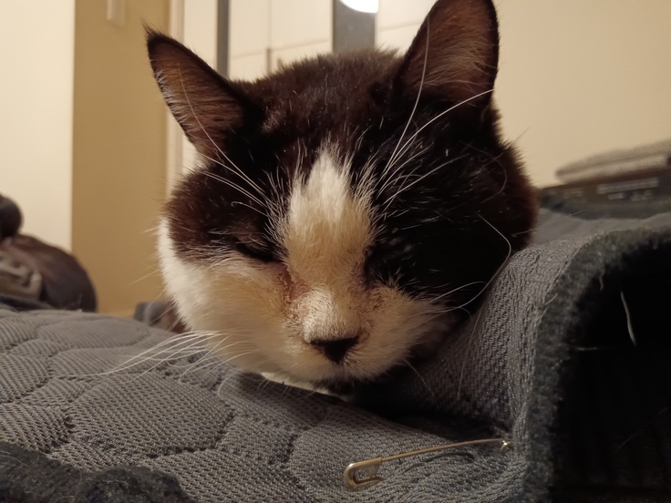 余談ですが、インスタグラムをご覧の方はご存知かもしれませんが、我が家の1番の古参ねこ、こうめが昨日手術をしました。横隔膜ヘルニアとそれに伴う腹膜炎、肺炎、無気肺です。炎症が強すぎて、炎症反応は測れないくらいが2週間程度持続してます。一時は腎機能の数値がこれまた測れない、カルシウム値があがりけいれんをおこす、と命の危機に瀕してました。貧血もはじまり、これから内科的治療をしても命は長くないと宣告され、超ハイリスクな中、手術を決行しました。なんとか終了し、考えられていた悪性腫瘍は否定されそうですが、胆管も横隔膜もボロボロだったようです。術後の肺水腫や腹膜炎の悪化も気になるとこですが、今日あらたに血圧が上がらない事態が発生。2種類の昇圧剤をつかってました。