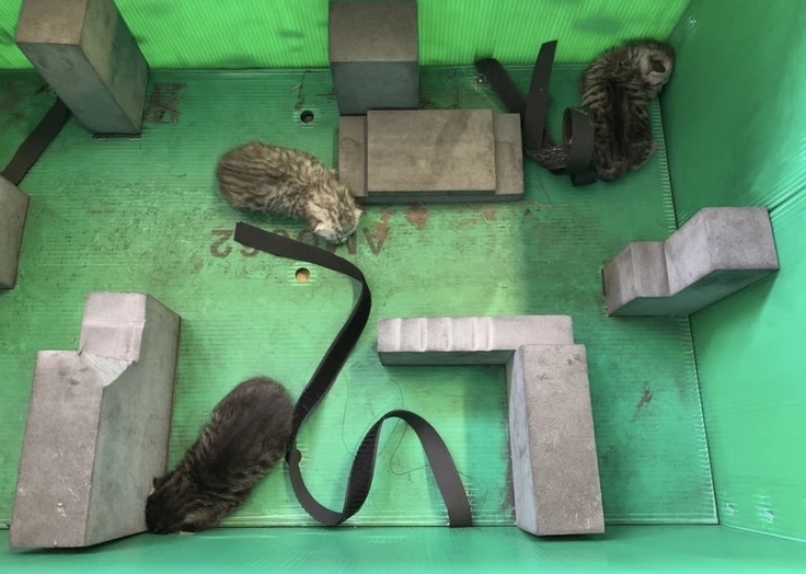 目の開いたばかりの小さな3匹の赤ちゃん猫がいました。