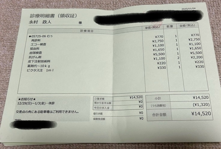 大まかに言いますと採血後の白血球の値を見て、抗がん剤を打つ判断を行っています。また、体の状態を見て抗がん剤の種類も選択しているようです。治療中、むぅちゃんがシャー!と怒ることがありますが、怒る元気があるんだねと私達は嬉しくなってしまいます。