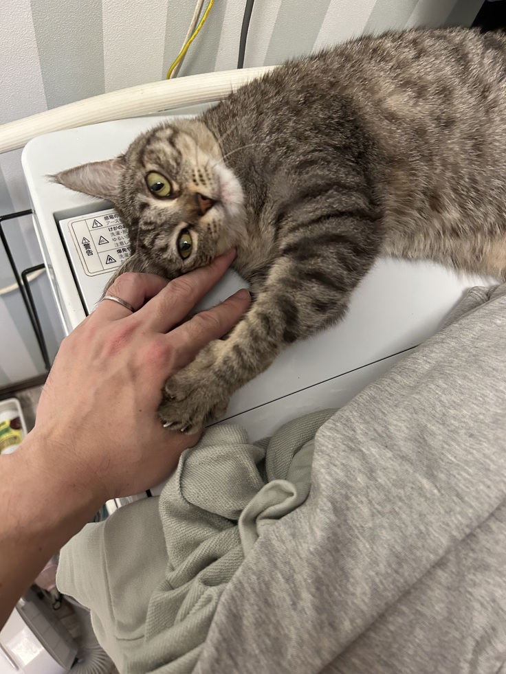 姉妹のみぃちゃんは穏やかに過ごしています。むぅちゃんと同じ病気ですが、抗がん剤治療によって腫瘍が小さくなり、良い方向に向かっています。
