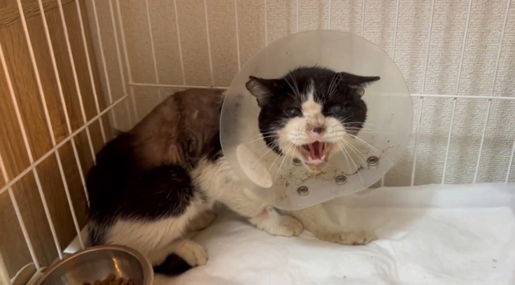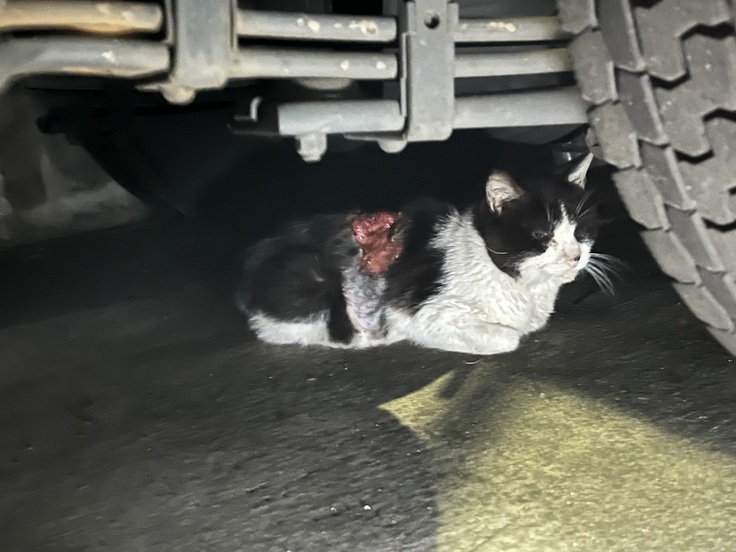 背中に大怪我を負った猫、太郎