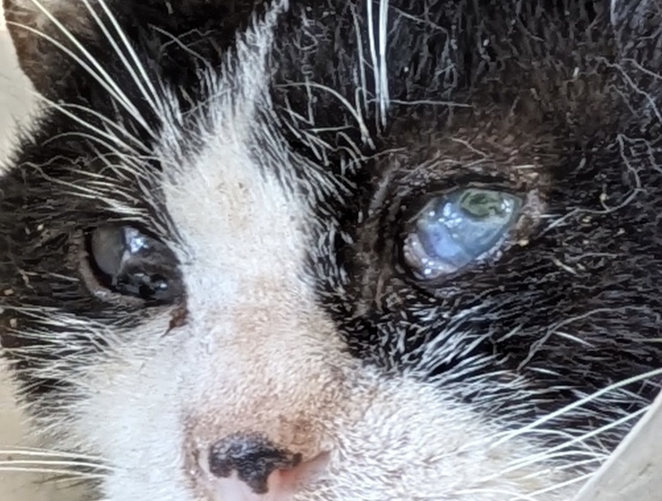 太郎の目はとても濁っていて、おもちゃを目の前で振ってもほとんど反応がありません。どこまで見えているのだろう?そりゃ突然近くで人の気配がしたら怖いよね。
