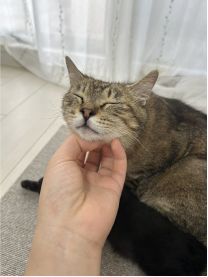 ひかりは特によく食べる子で、授乳中ということもあって普通のネコの何倍もご飯を食べていました。まん丸のお腹が歩く度に「ぽよんぽよん」と揺れてとても可愛らしかったです。外で暮らしていた時代に人間からご飯をもらっていたのか、ふくよかで穏やかな人間大好きっ子です。本当に元野良猫なの?と聞きたくなるくらい、おちゃめで可愛い子です。