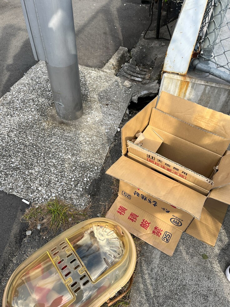 風よけになればと誰かが段ボールを置いてくれたのかな?それともこのまま捨てられたのかな?