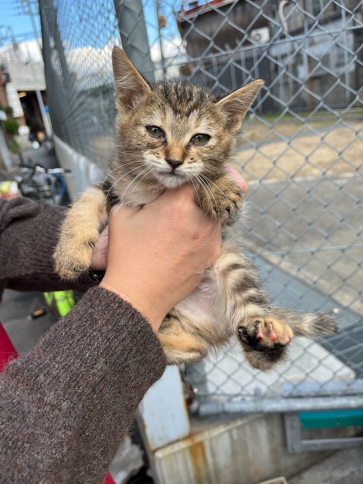 遠方から大阪に遊びに来ているのですが、昨夜段ボールに入っている子猫を見つけました。