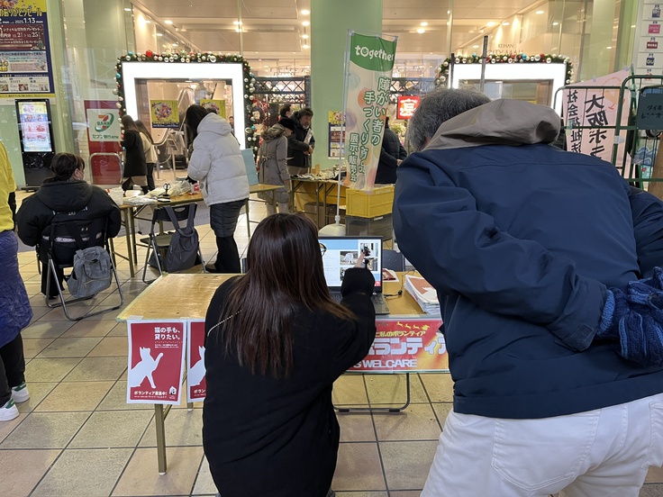 CATSWELCAREのボランティアさんにも協力してもらい、保護猫の猫生ストーリーを説明したり、ボランティアって何をするの?という質問に答えたり、チャリティー物販を行ったり。