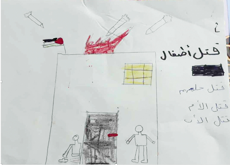 「爆撃から2か月以上たっても、ほとんどの子どもが戦争の絵を描きます。頭の中にまだ戦争があるからです。ある子どもは空爆が怖くて外に出られず一人で家にもいられない。