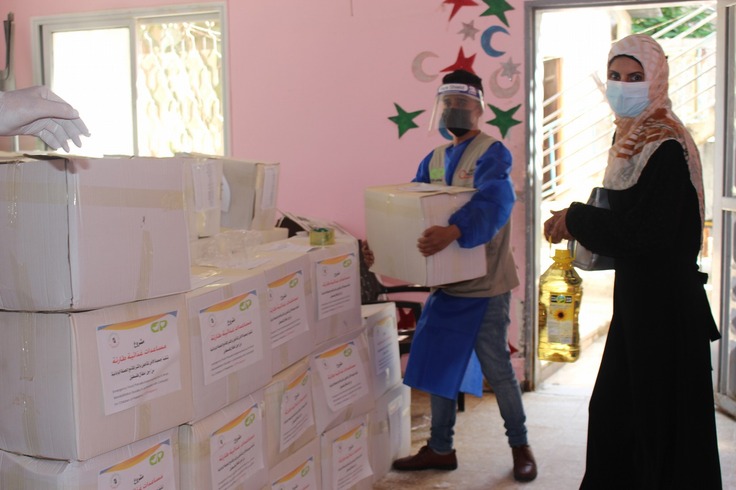 私たちは現地提携団体と協力し、7月と8月にガザ市、南部ラファ地区の障がい者家庭、女性世帯主家庭など300世帯(約1,800人)に「食料パッケージ(約1万円・約3~4週間分)」または「食糧や生活物資と交換できる引換券(約1万円)」を配布しました。