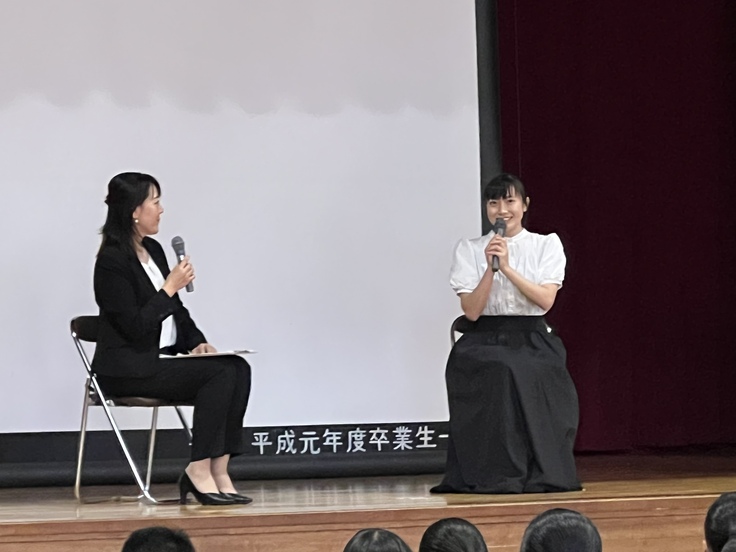 特別授業2日目となる11月18日(金)には小浜市立小浜中学校にて声優の福井裕佳梨さんに小浜市が力を入れているキャリア事業の一環として中学2年生123名対象に『仕事と魅力的な生き方』について地元MC野々宮のりこさんとのトークショー形式で講演いただきました。