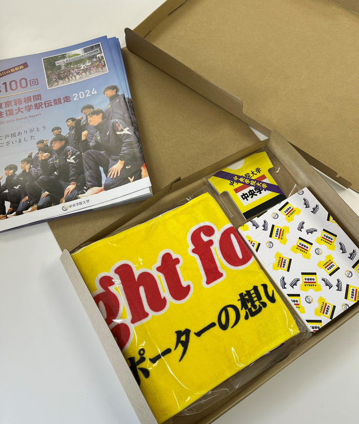 さて、プロジェクトにご賛同いただきました皆さまに、ささやかではございますがギフト(返礼品)をお贈りいたしました。また、駅伝部寮内覧会につきましても準備を進めておりますので、詳細が決まり次第、再度ご連絡させていただきますのでよろしくお願いいたします。