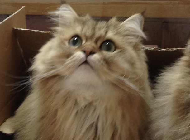 撫でてもらうためにキッチンの小さな箱の上にちょこんとすわります。