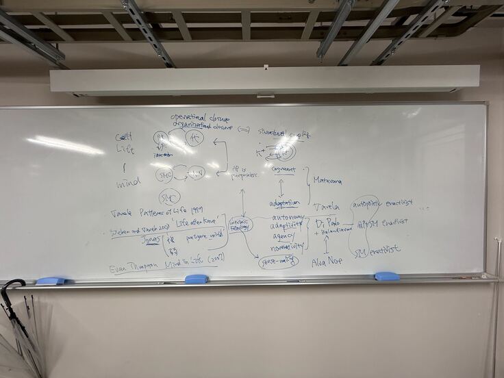 本勉強会では、ショーン・ギャラガーによる名著『身体性認知とは何か:4E認知の地平』(田中省吾 訳)をテキストとして読み進めています。単なる輪読ではなく、それぞれが疑問点や関連文献を持ち寄り、「身体性」「状況性」「相互作用」「環境との結びつき」といった 4E 認知科学の中核概念をめぐって活発な議論が交わされています。
