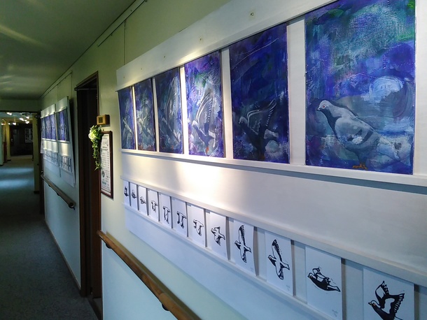 実際に撮影に使う鳩の絵画のポストカードです。サテン紙にオフセット印刷します。封筒に入れてお送りいたします。