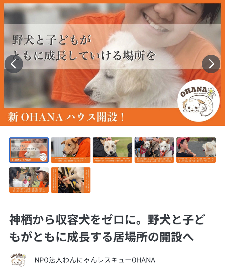 NPO法人わんにゃんレスキューOHANAさんのクラウドファンディング挑戦中の