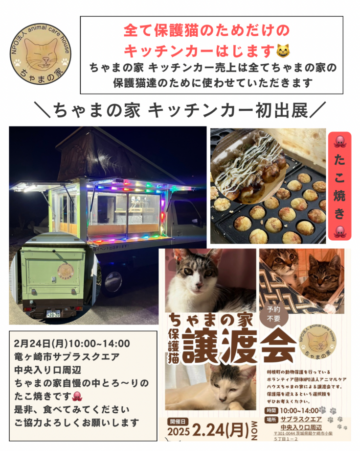 2/24(月・祝)ちゃたの家キッチンカー初出店 サプラスクエア竜ヶ崎