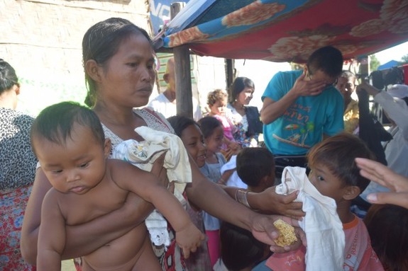 直ぐに皆が集まってきました。小さい子から優先的に配布します。