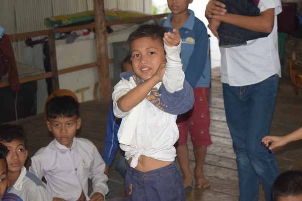 先ずは保管場所であり、仕訳をお手伝いしてくれたバサックスラム孤児院の子ども達へ。ここの子ども達の住んでいる施設も決して清潔とは言えません。虫や小動物もよく見かける環境。そこでいつも裸でいる子も多く、それは衛生上改善したいと思っていた問題です。何度も訪問している施設ですが、多くの子は体に擦り傷、切り傷があるのは日常的。菌が入って化膿していたり、発疹が出ていたり、また前回訪問した際には5才の女の子が病気で痩せ細っていたのも心配していたところでした。