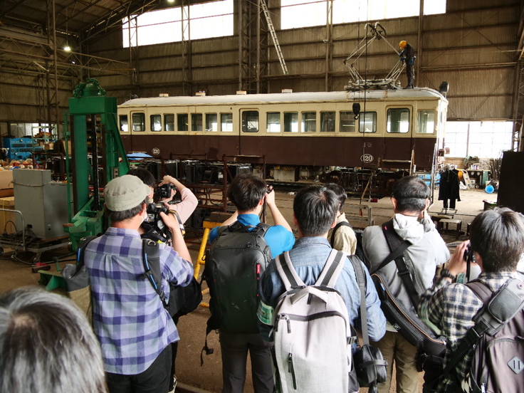 工場見学については入場している車両で撮れ高が変わるのですが、この日は運よくレトロ電車120号が作業中でした!