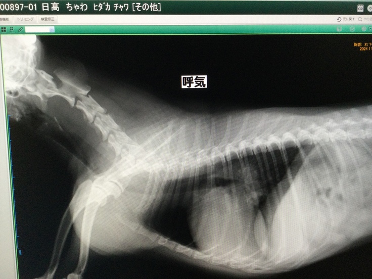 11月25日の検査の結果、前回の検査時よりも体重が300g減り、咳が増え、また肺に影がうっすら出てきており、肺水腫になりかけているとのことでした。