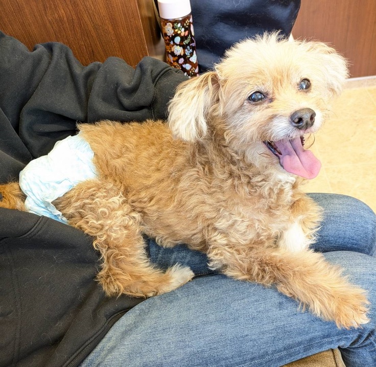 (術前、個室の控室にてオムツをはいて満面の笑みを浮かべるちゃわちゃん)