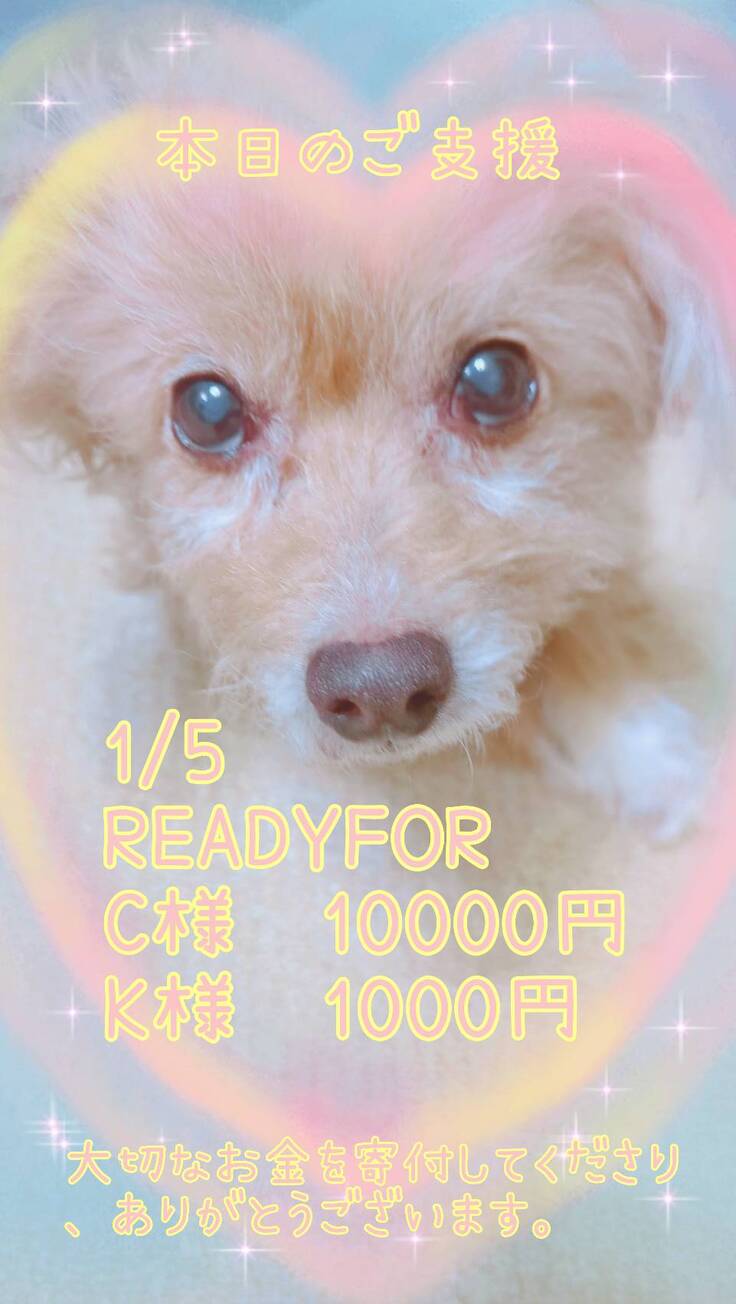 ご支援金は全て、ちゃわの手術費、入院費、通院費に充てさせて頂きますので、リターンに費用を掛けられず、申し訳ございません。