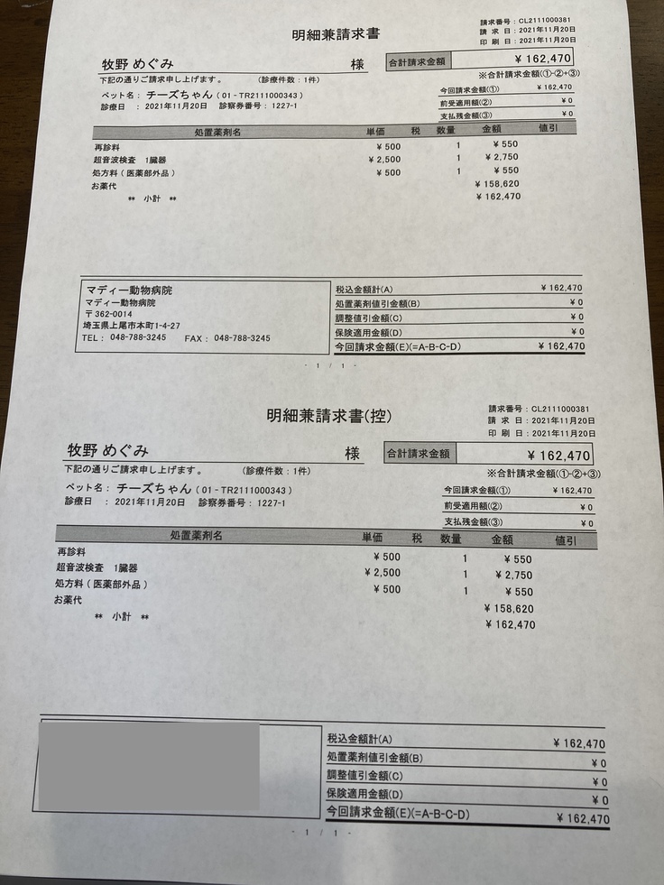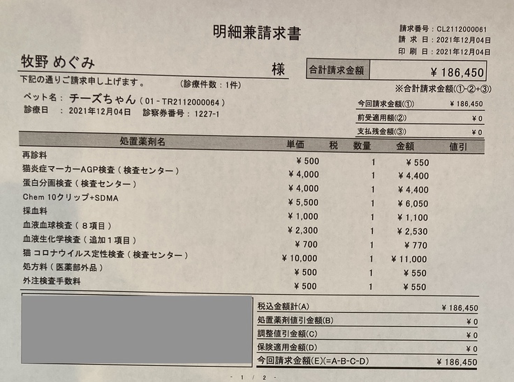 今回は、11/20と12/4にFIP治療薬を取り扱う協力病院へ再診しましたので、