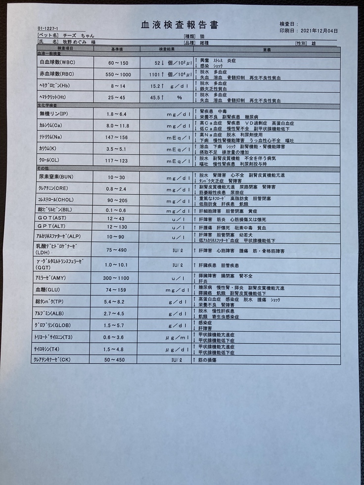 投薬終了後も経過観察が必要のため、まだまだ油断はできませんが、数値は良い検査結果となっておりほっとしてた気持ちでいっぱいです。