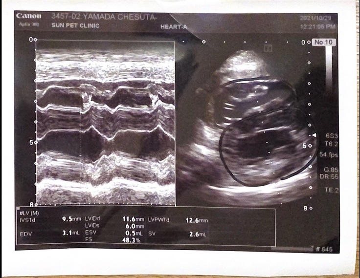 そのせいで、本来あるべき心臓のサイズから考えられないくらい変わってしまい、かなり圧迫している状態になってしまっているとのことでした。