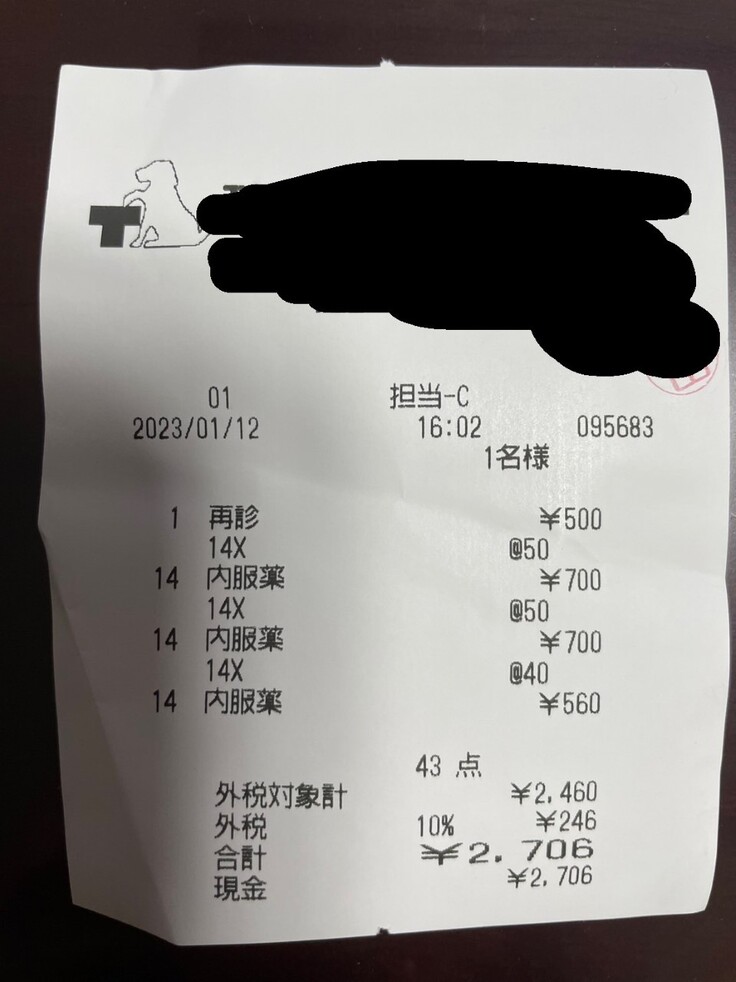 〈下痢、お尻の傷の軟膏等の領収書 1月12日〉