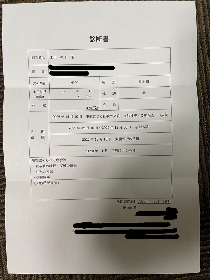 ページ上に掲載している診断書や診療明細書などの資料は全て動物病院から掲載の許諾を得ております。