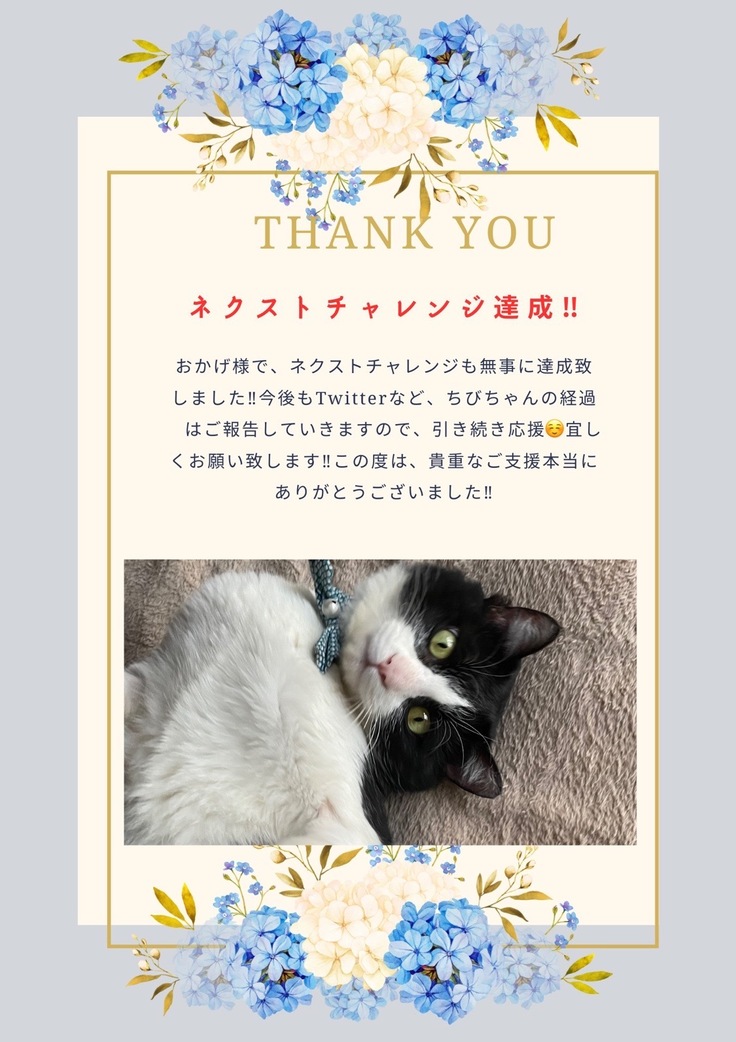 万が一、ちびちゃんが亡くなってしまった場合、いただいた支援金については、返金はせずこれまでの治療費に当てさせていただきます。