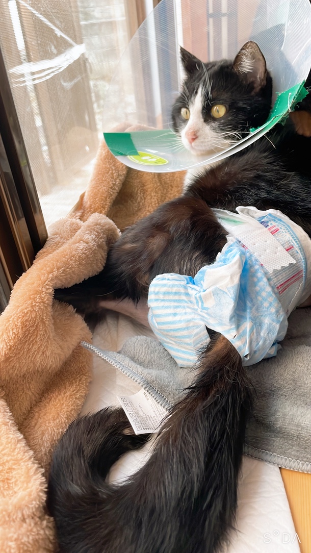 右足の毛が早く生え揃うと少しは温かいだろうなぁと思う母でした🐈⬛