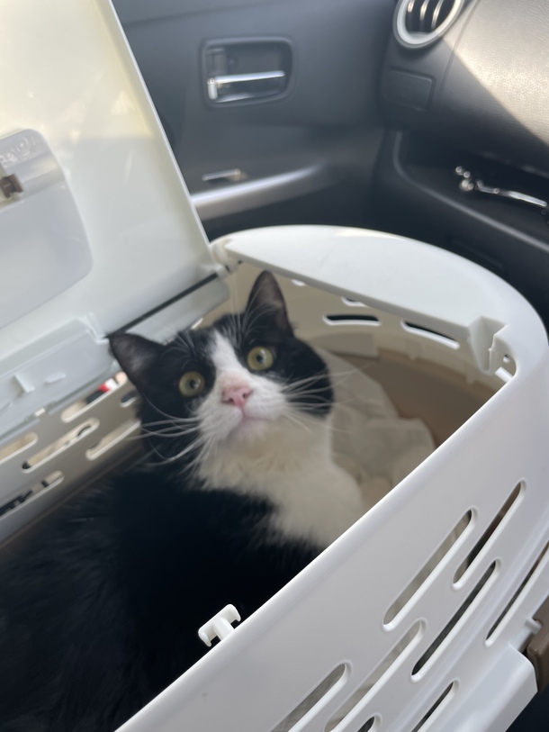 帰りの車の中のちびちゃんのお写真です🐈⬛