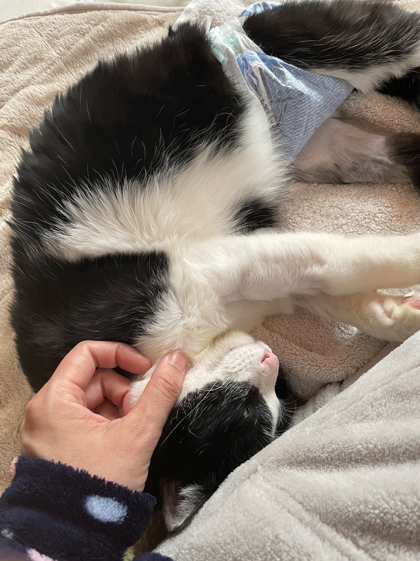 ちびちゃん、お布団に入ってきて、終日、べったり私に小判鮫のようにくっついてます(笑)