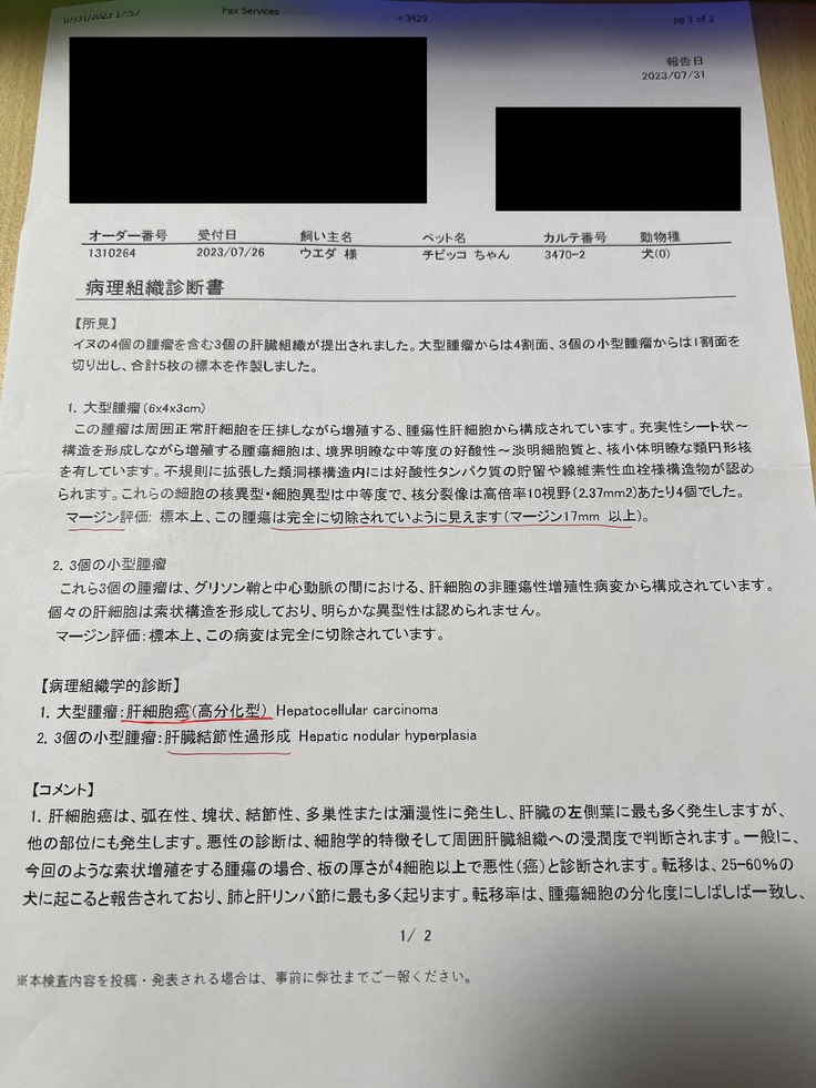 プロジェクト実施完了までの間に、治療方針や治療の要否に変更が生じた場合、支援者の皆さま、READYFOR事務局様に速やかにお伝えすることになっておりましたので詳細をご報告させて頂きます。