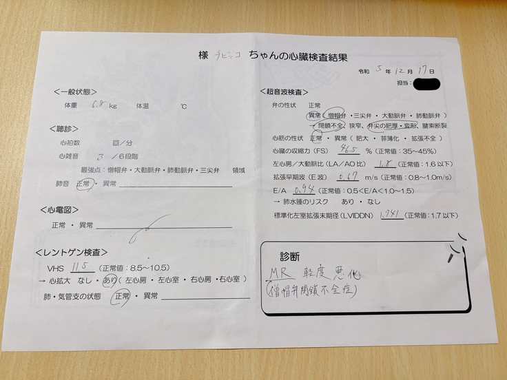 ↓僧帽弁閉鎖不全症のレントゲン画像とエコー画像 2023.12.17(2024.6.26.にも実施)